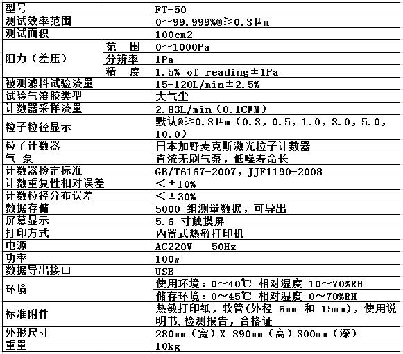 便攜式濾材過濾效率阻力測試儀 型號:FT-50